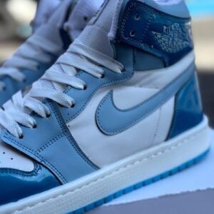 نایک ایرجردن1 سفید آبی ساقدار ورنی(white blue)